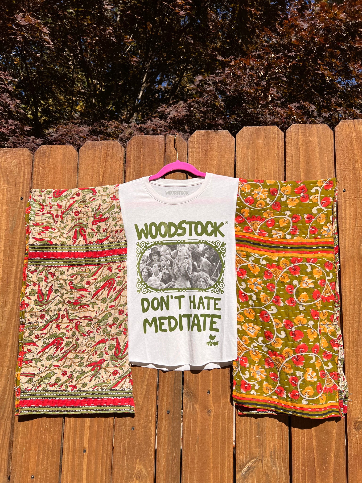 *expect some minor flaws in fabric as these materials used for upcycled are vintage / handmade. Each variation makes this item unique and one of kind. It is made with love using hand stitched quilts from India.