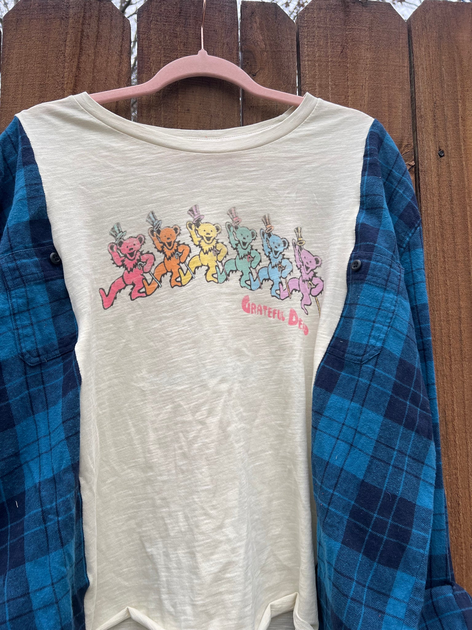 FLANNEL TEE GRAPHIC TOP // open size handmade // GRATEFUL DEAD blue
