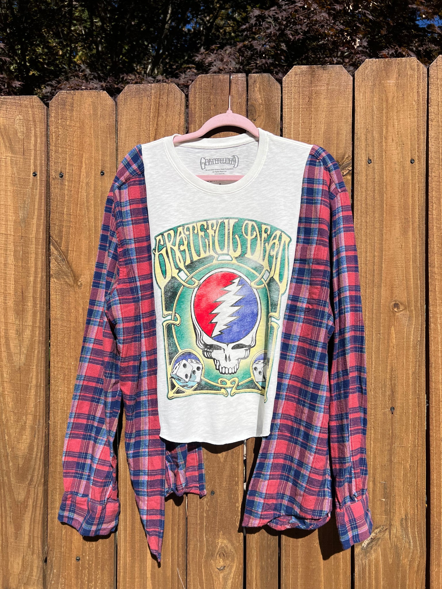 FLANNEL TEE GRAPHIC TOP // open size handmade // GRATEFUL DEAD
