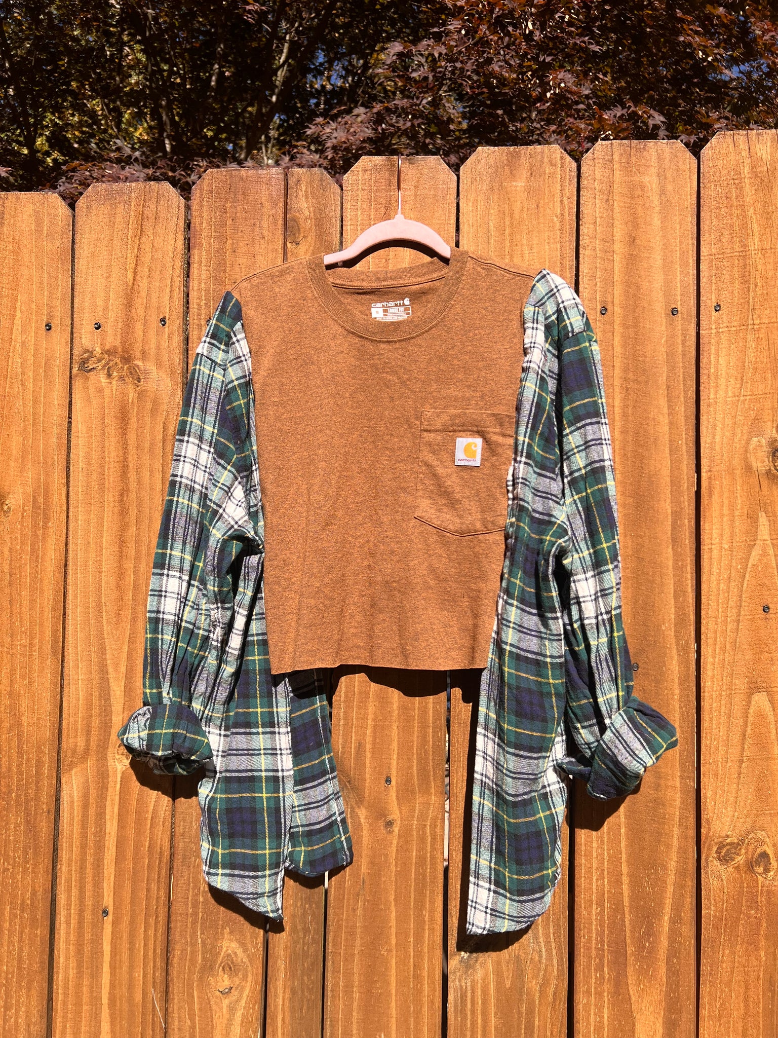 FLANNEL TEE GRAPHIC TOP // open size handmade // CARHARTT