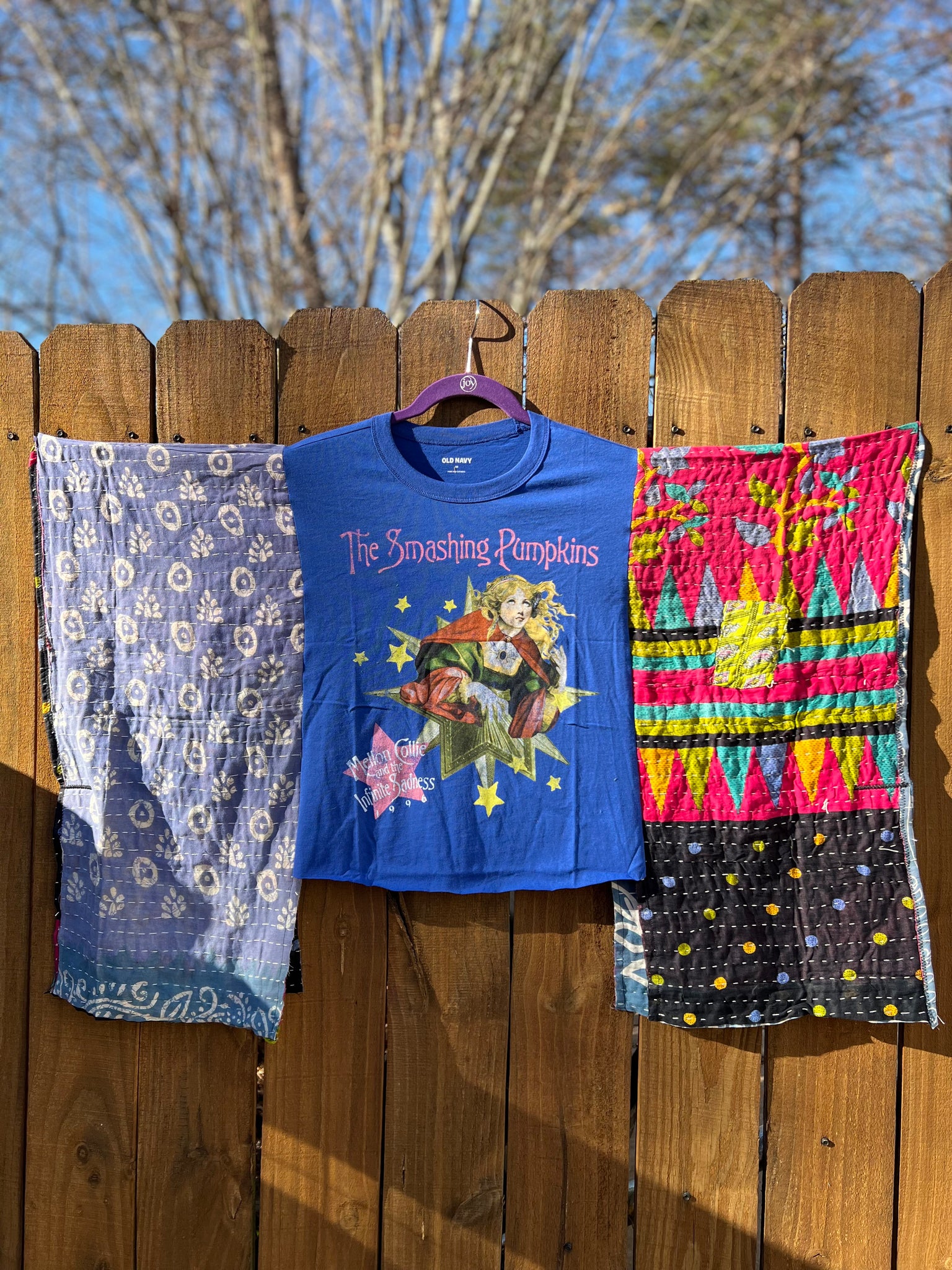 Thrifted tee  ) + open size kantha wings With funky print..