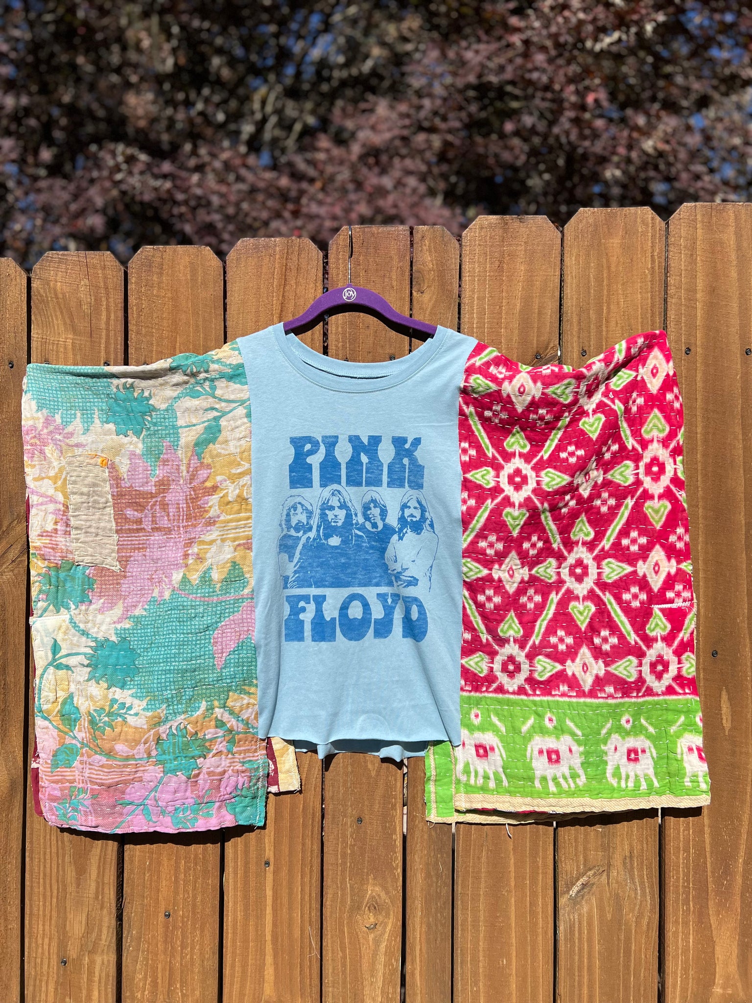 *expect some minor flaws in fabric as these materials used for upcycled are vintage / handmade. Each variation makes this item unique and one of kind. It is made with love using hand stitched quilts from India.