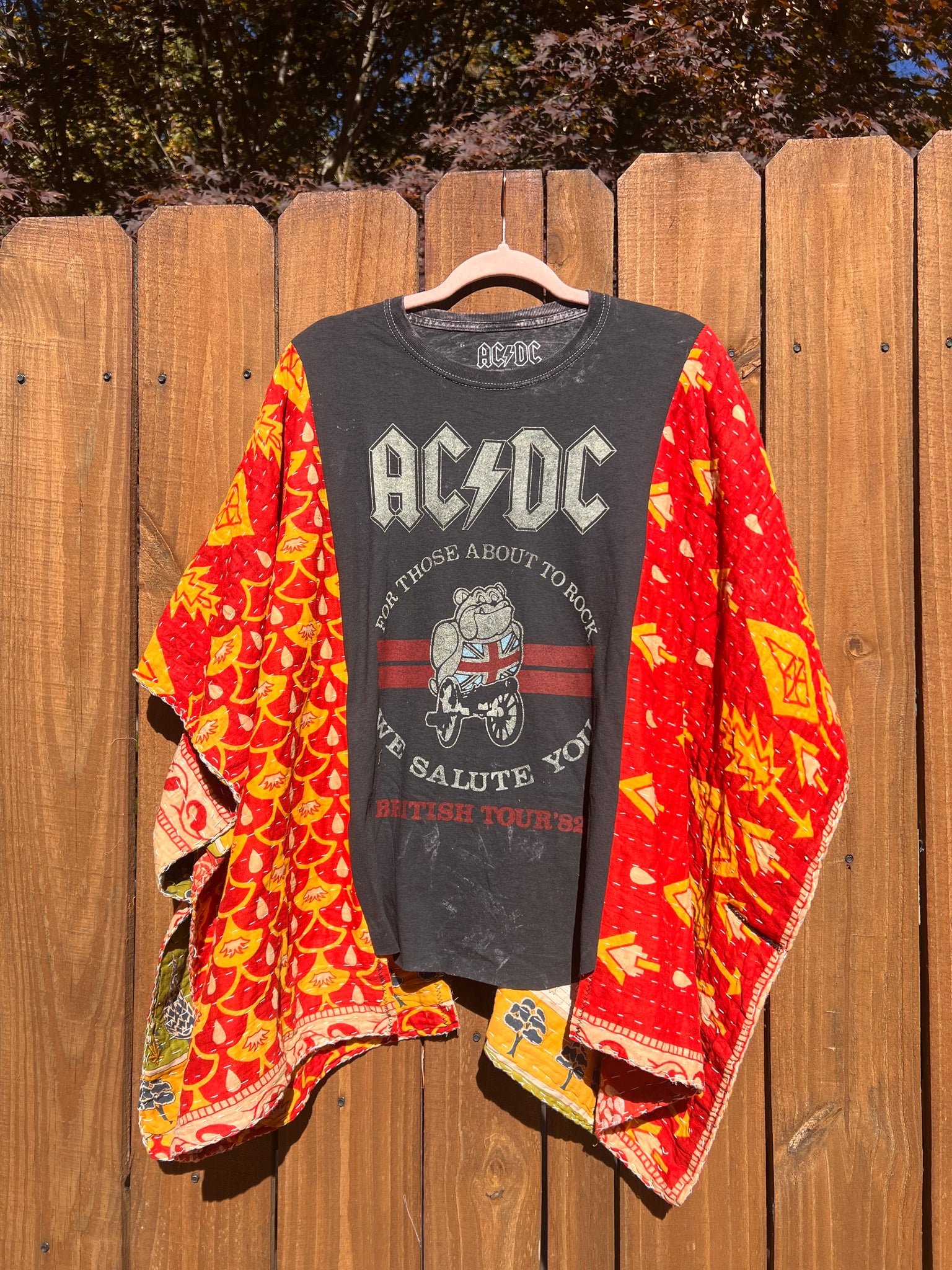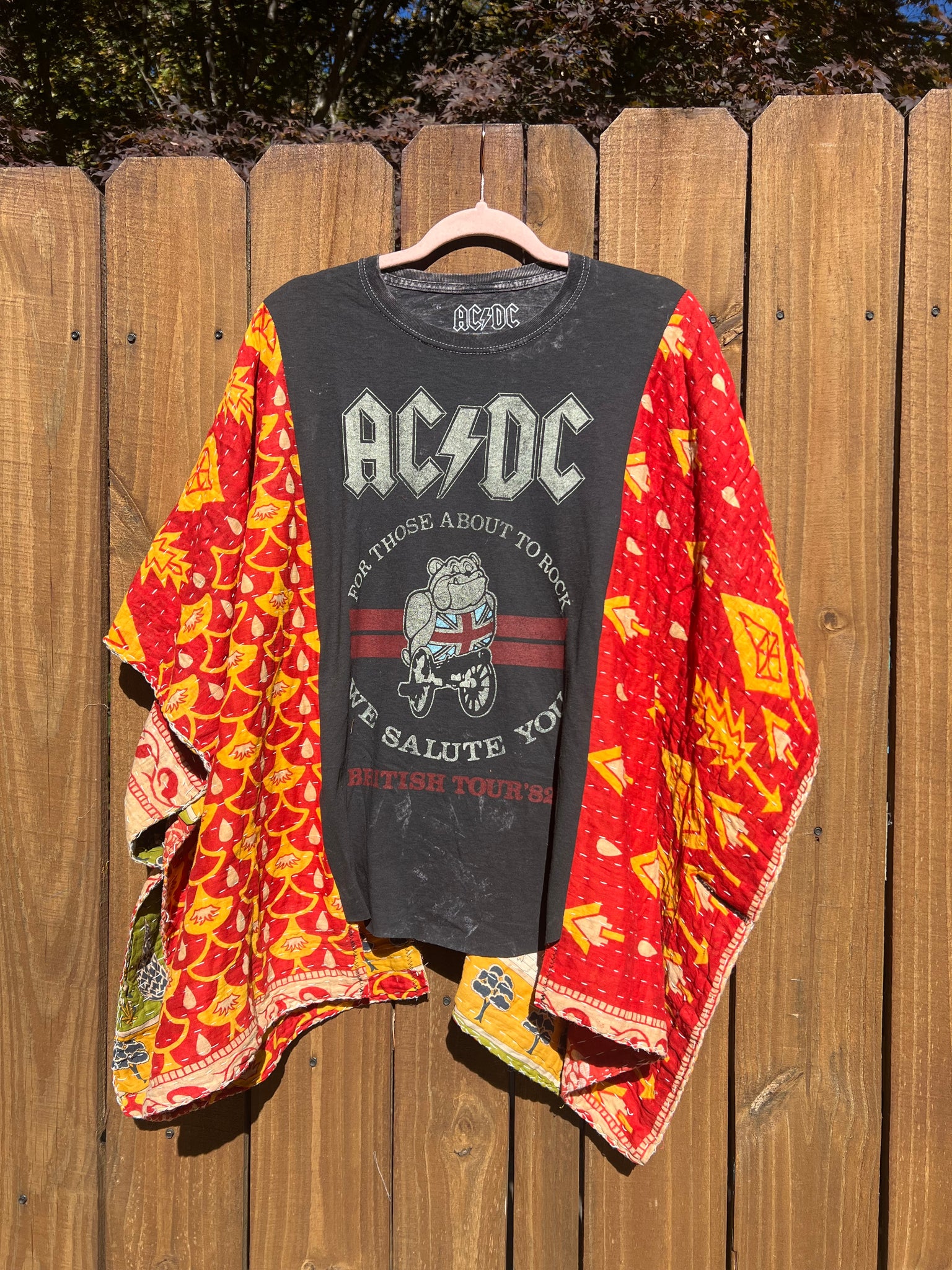 KANTHA TEE KAFTAN // open size handmade // AC/DC Rock