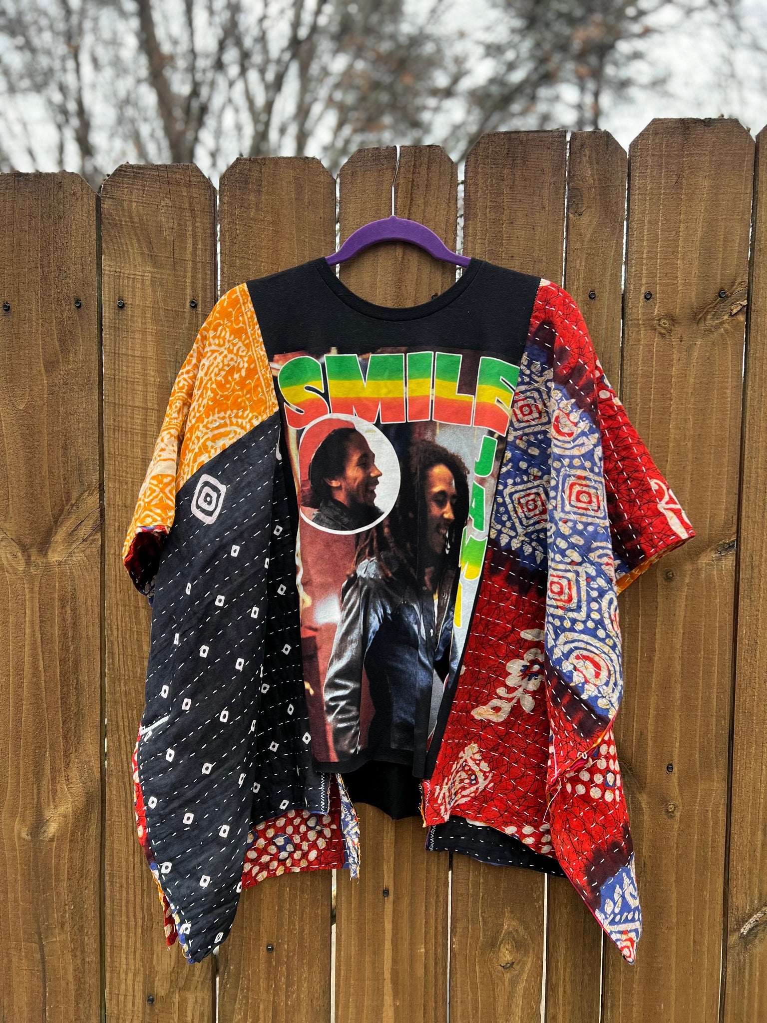 KANTHA TEE KAFTAN // open size handmade // BOB MARLEY Jamaica