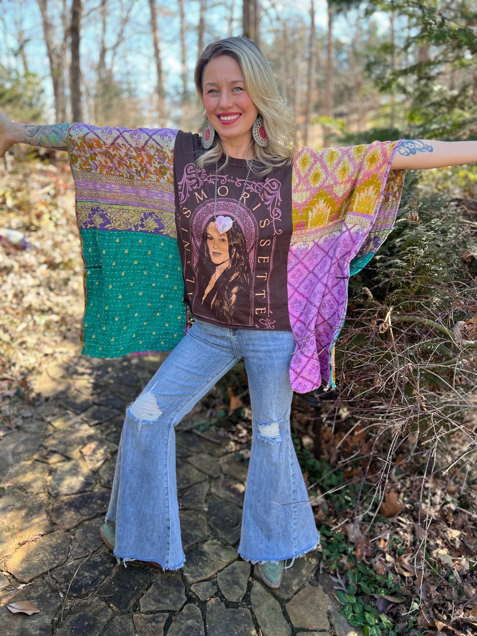 *expect some minor flaws in fabric as these materials used for upcycled are vintage / handmade. Each variation makes this item unique and one of kind. It is made with love using hand stitched quilts from India.