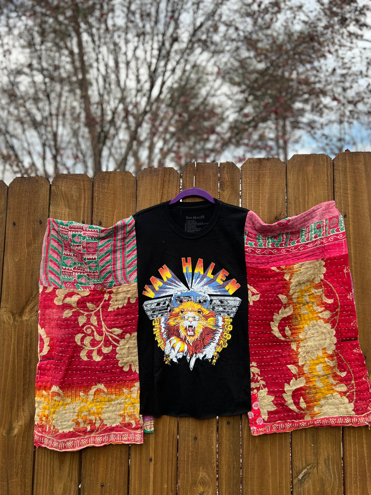 Thrifted tee  ) + open size kantha wings With funky print..