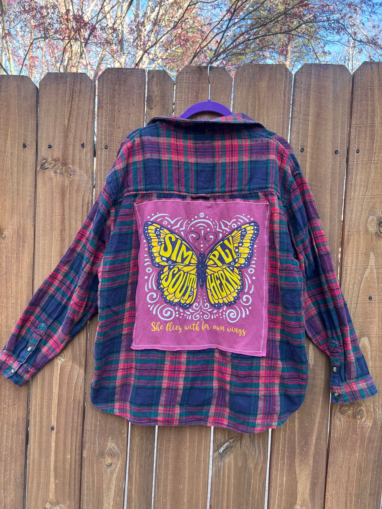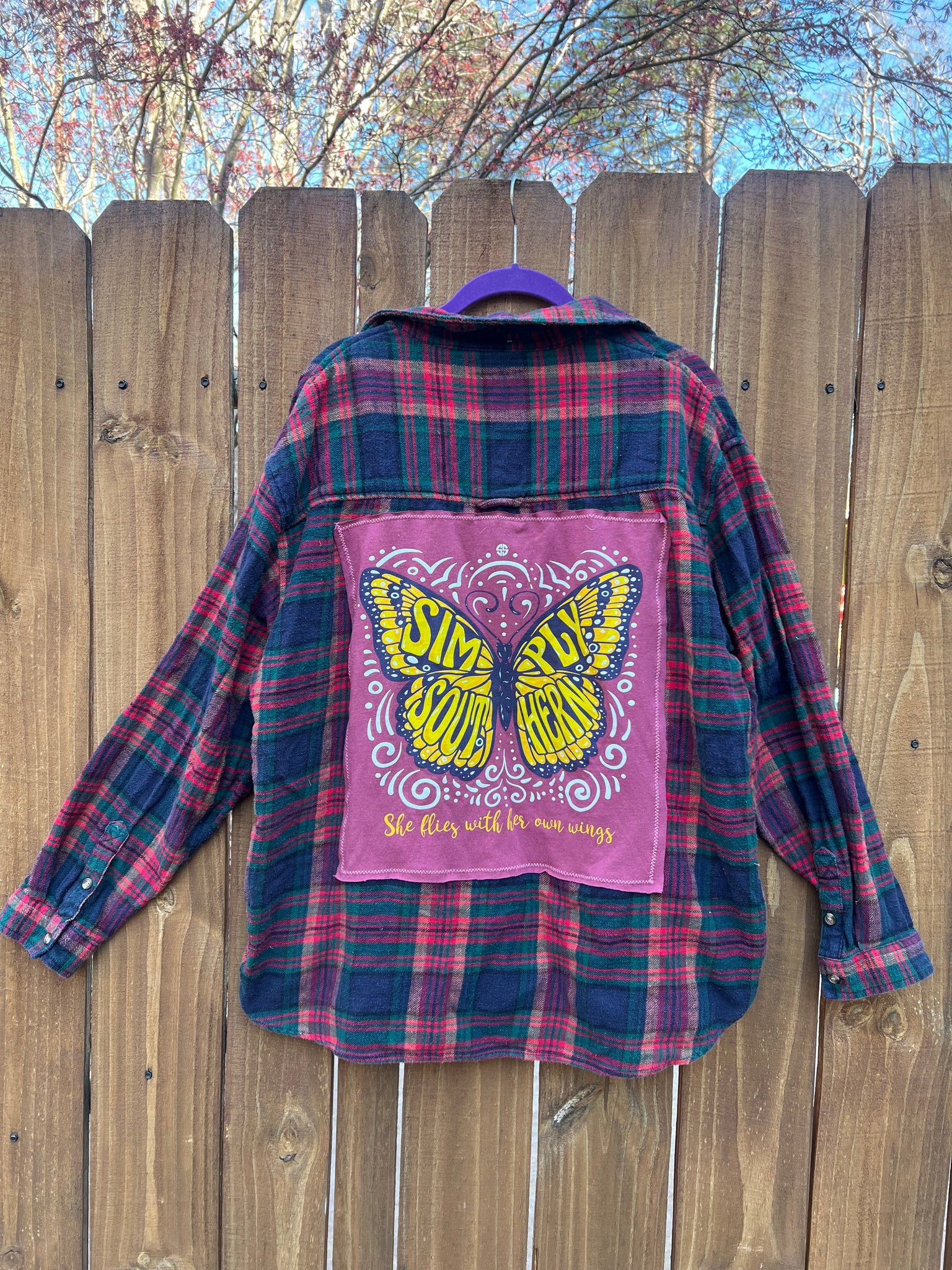 OOAK upcycled FLANNEL “ she flies ” shirt // large