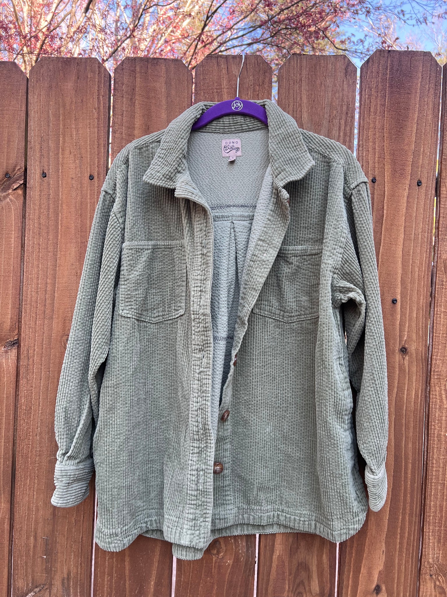 Thrifted tee ) + size small oversized fit womens corduroy shirt .