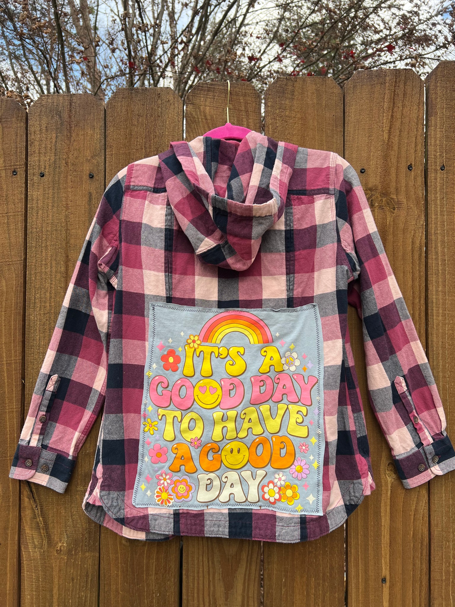 Vintage tee ) + size XS (oversized) woven thick button up flannel with hood!