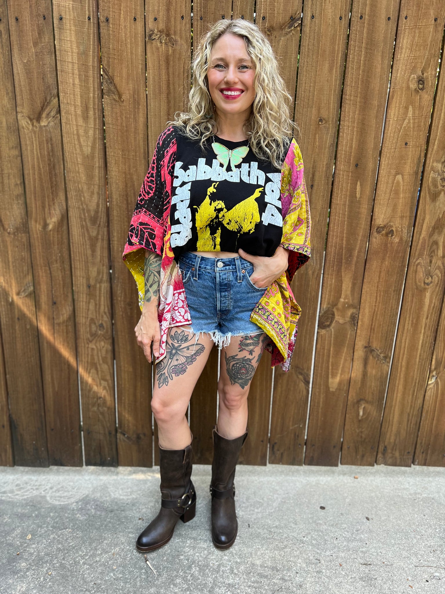ALL OF MY REMAKES ARE ONE OF A KIND. The middle tee will be the same graphic but the Kantha sleeves will slightly differ and match the graphic to the best of my abilities (: please trust me and expect artistic variations