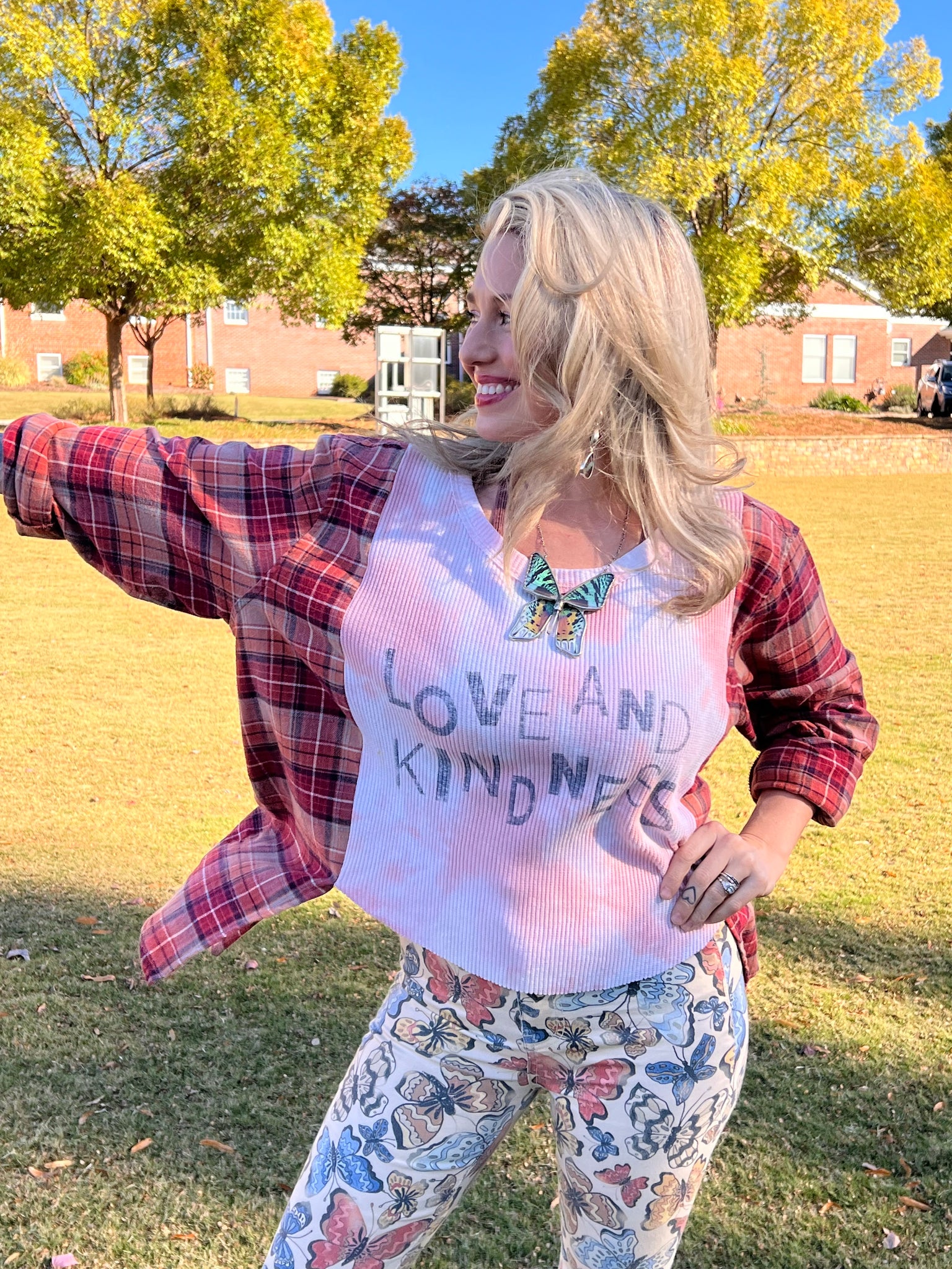 Thrifted tee ) + open size flannel sleeves vintage / thrifted from soft mens flannels..